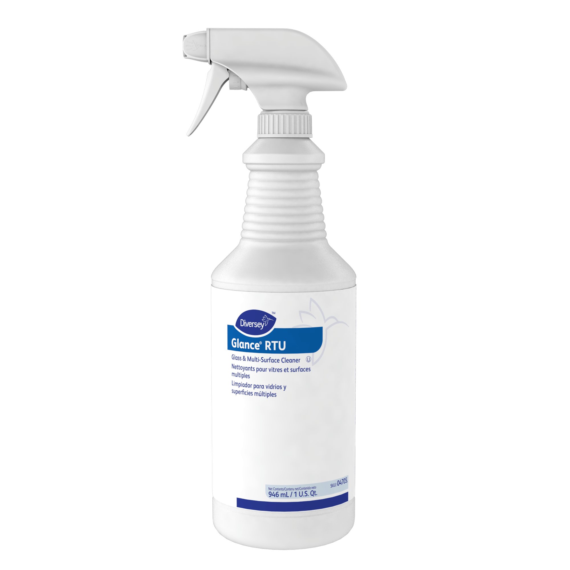 Non-streaking, quick-drying, ammoniated glass cleaner. Cleans and shines glass, mirrors, sinks, countertops, stainless steel and many other washable surfaces. Blue in color with an ammonia scent. SKU 04553 is colorless with an ammonia scent.