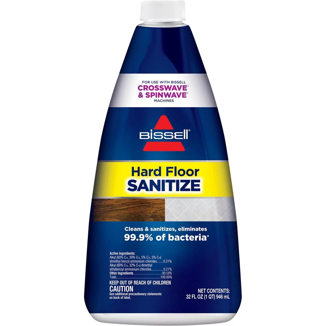 BISSELL Hard Floor Sanitize Formula eliminates 99.9% of bacteria on sealed hard floors in just 5 minutes. Its powerful formula works quickly and effectively, ensuring your floors are clean and sanitized.